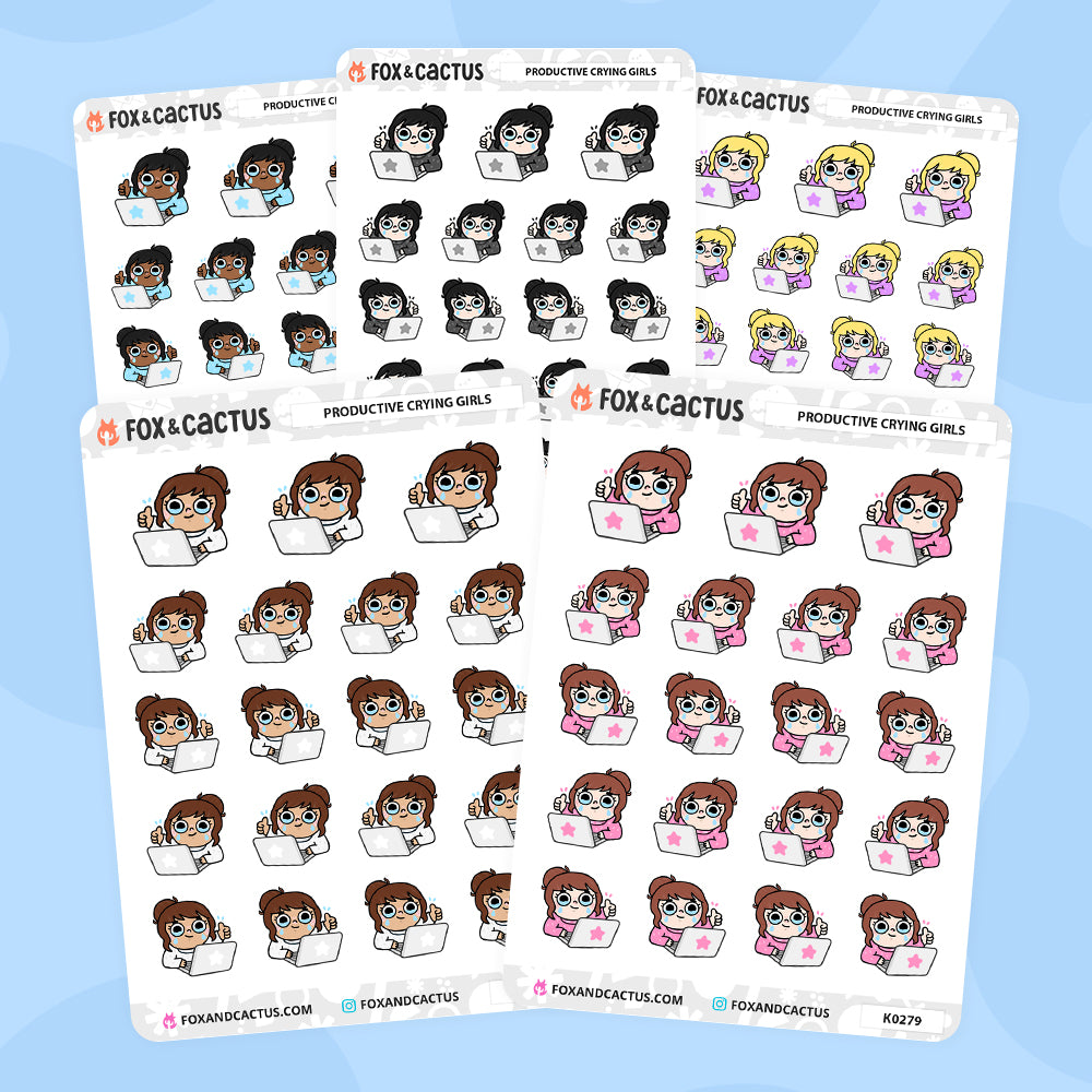 Productive Crying Kawaii Girl Stickers