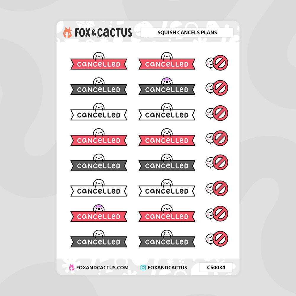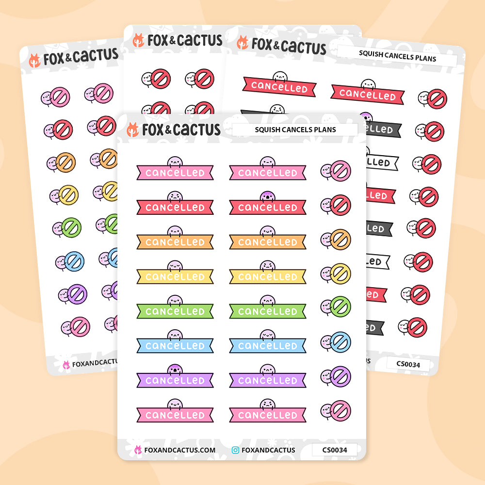 Perfect for marking cancelled plans in your planner of choice, or anywhere else your heart desires!! Includes both "cancelled" banners as well as smaller icons!