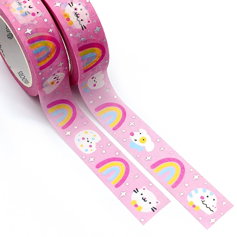 This adorable Holo Foiled Rainbow Friends Washi Tape features a bunch of pals and is sure to make any planner spread shine with cuteness! It's EXCLUSIVE to Fox and Cactus and designed in house by Emma! <3
