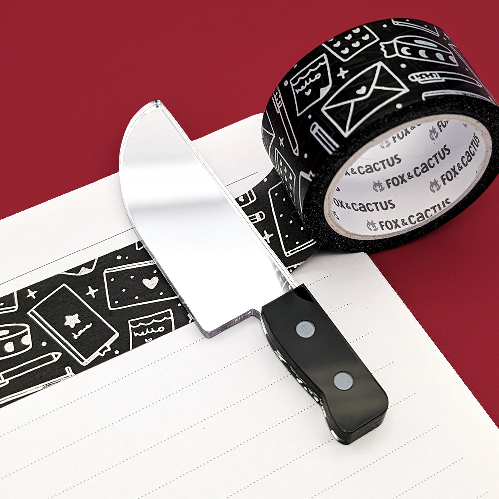 DISCLAIMER: This is NOT a real knife. It is made from mirrored acrylic and is only designed to be a washi cutter.