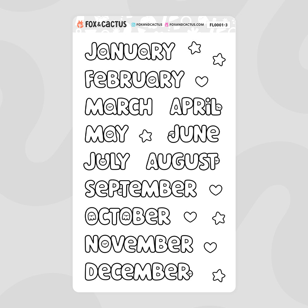 The perfect monthly headers for your planners and journals! Great for sticking in the monthly sections of undated planners, decorating your bullet journals, and adding some fun lettering to your dated planners! This version of our monthly words features Squish. 👀