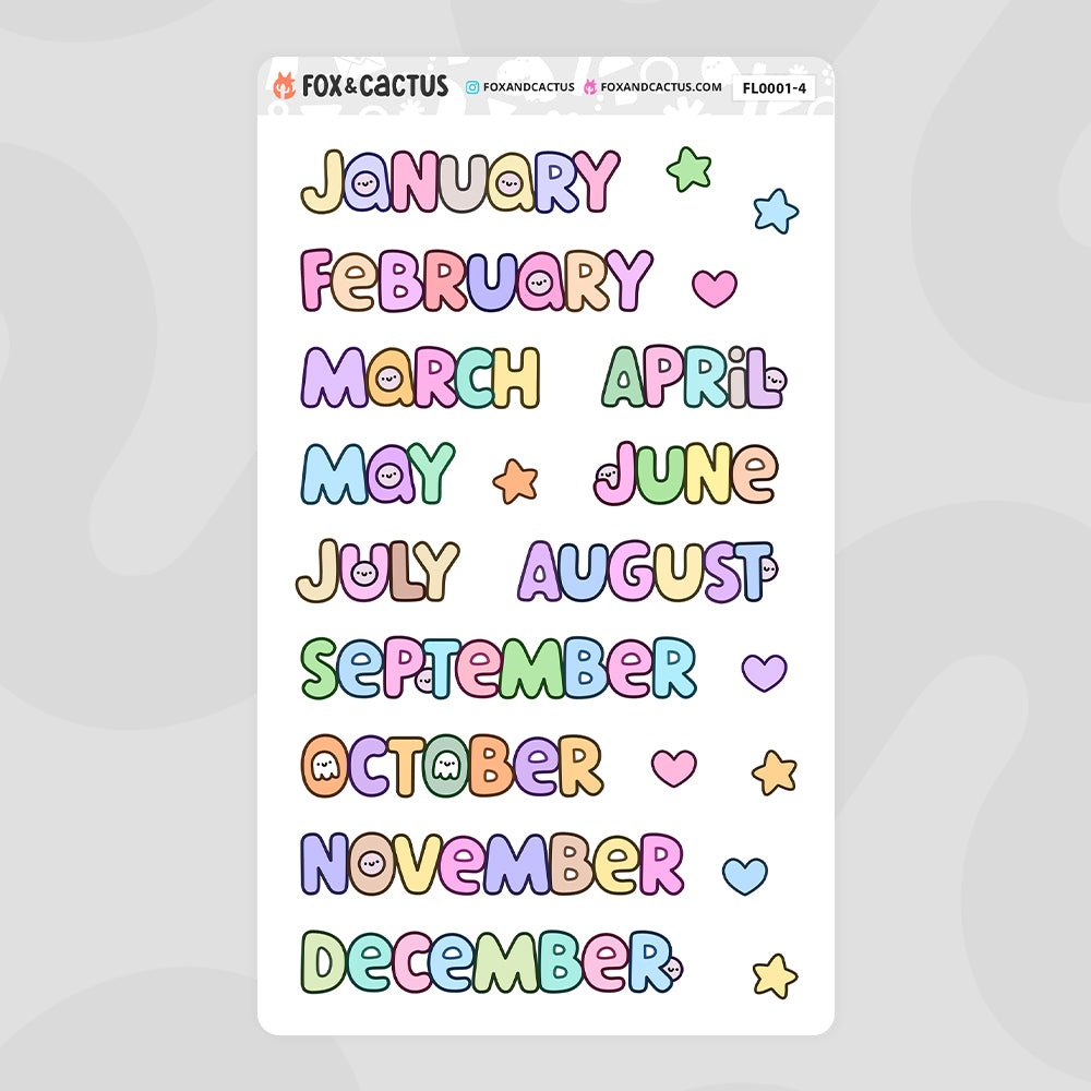 Large Squish Monthly Word Stickers