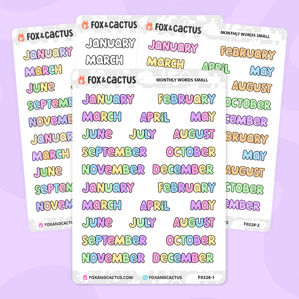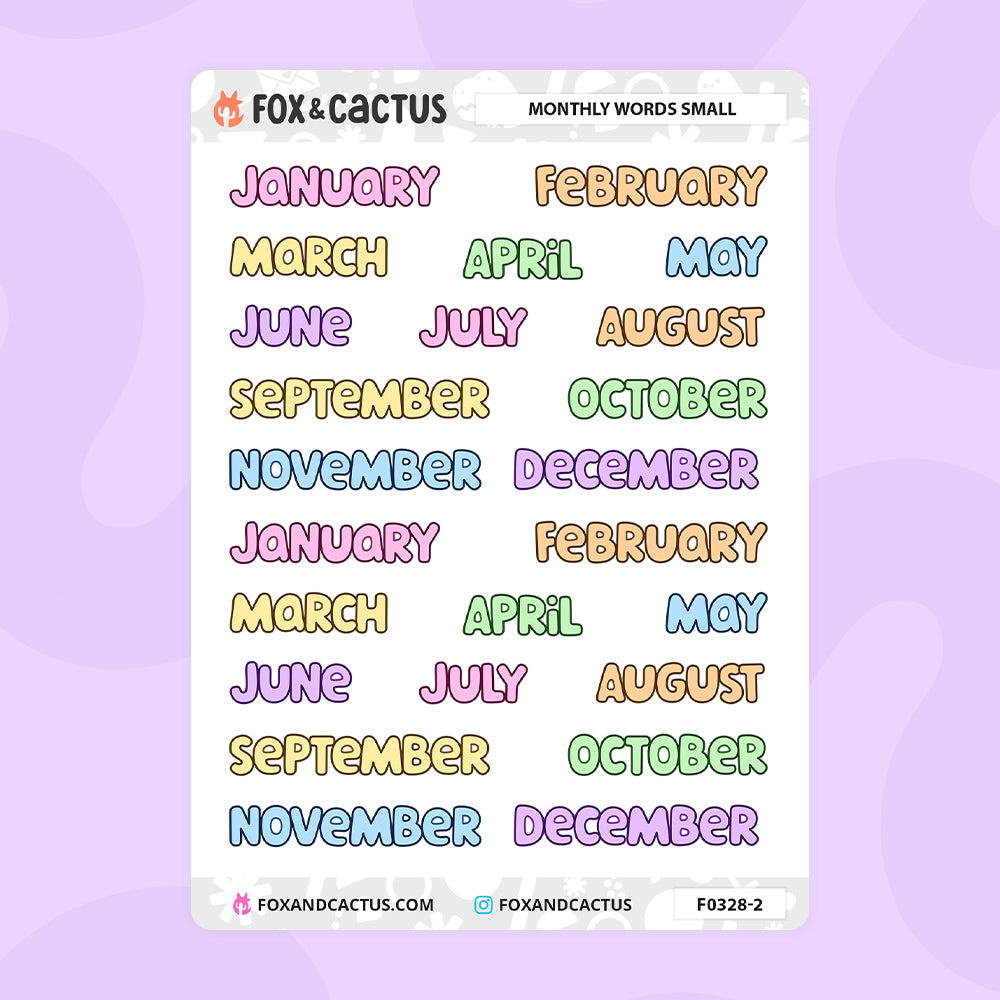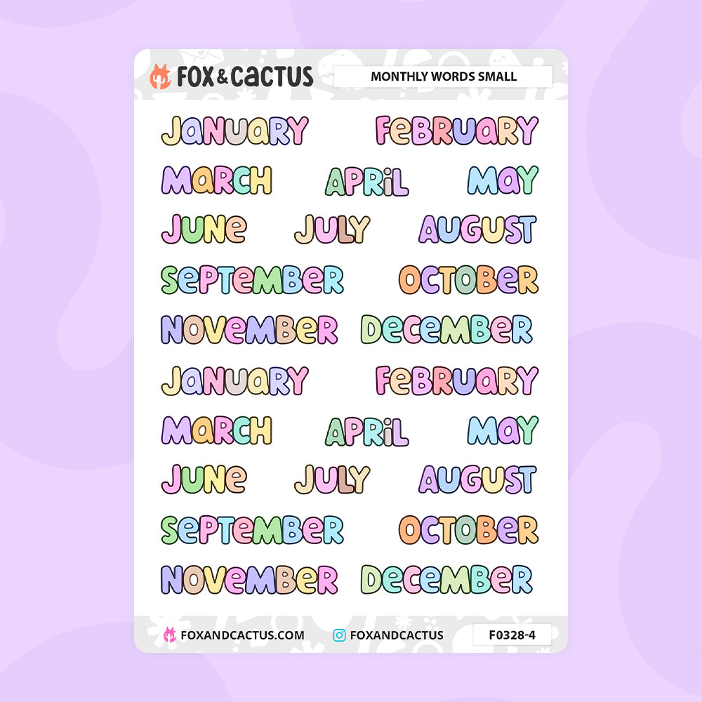 One (1) sheet of Monthly Word planner stickers in Small sizing!*