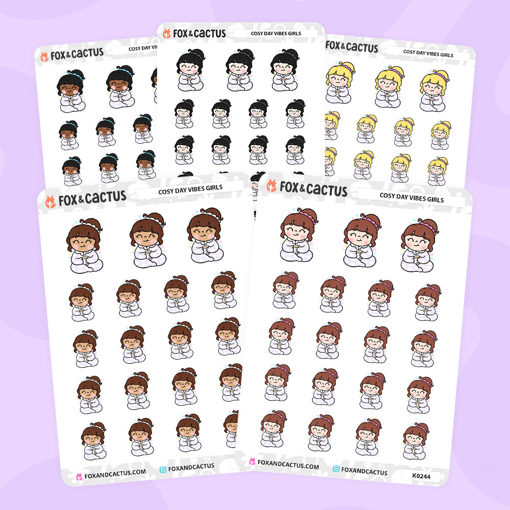 One (1) sheet of Cosy Day Vibes Girl stickers!* (AVAILABLE IN 5 VARIATIONS - PICK YOUR GIRL)
