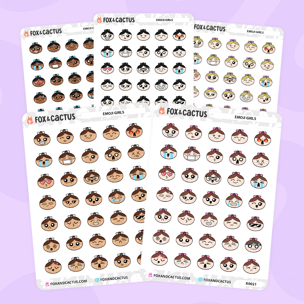 One (1) sheet of Emoji Face Kawaii Girl planner stickers!* (AVAILABLE IN 5 VARIATIONS - PICK YOUR GIRL)