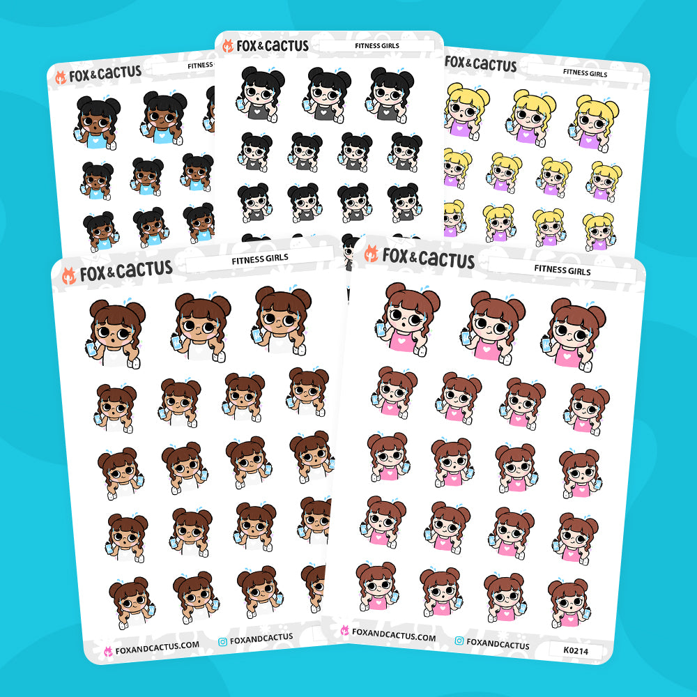 One (1) sheet of Fitness Girl stickers!* (AVAILABLE IN 5 VARIATIONS - PICK YOUR GIRL)