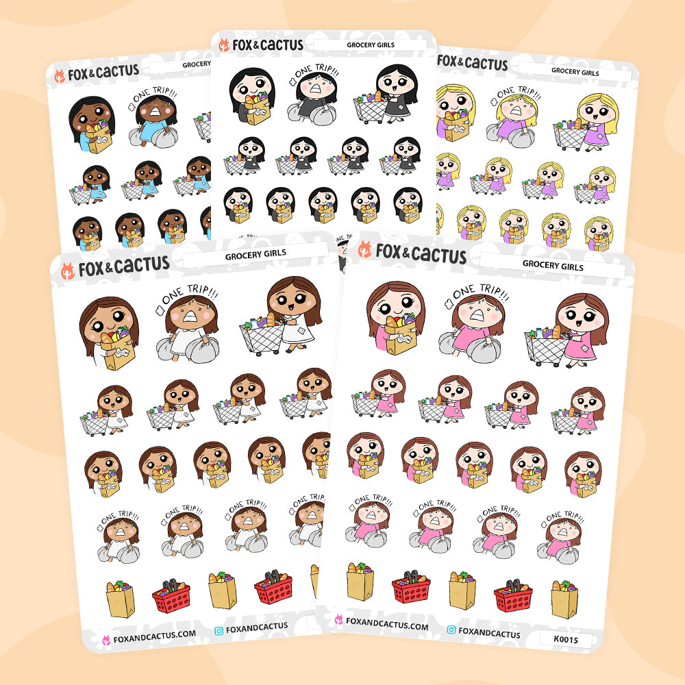 One (1) sheet of Grocery Kawaii Girl planner stickers!* (AVAILABLE IN 5 VARIATIONS - PICK YOUR GIRL)