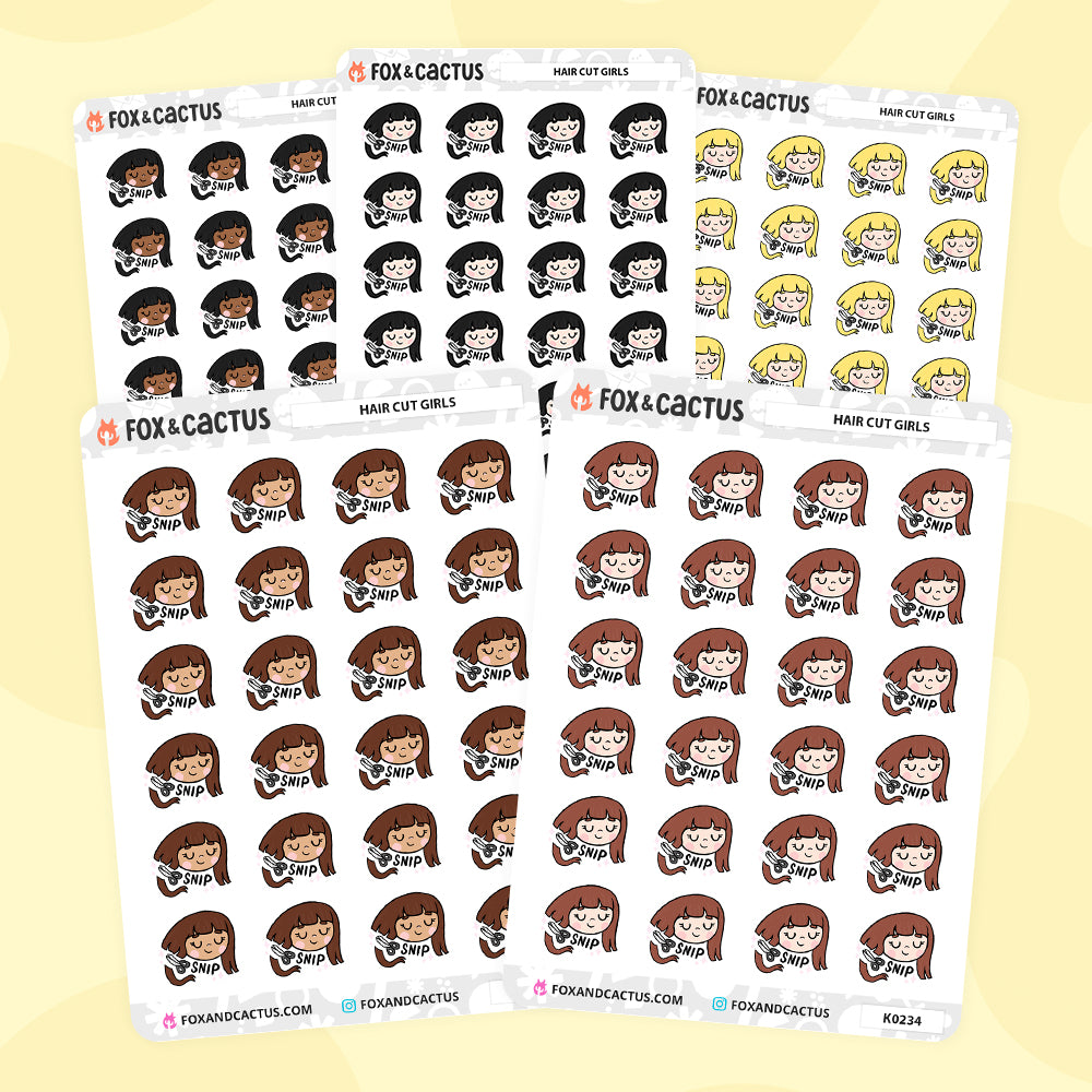 One (1) sheet of Haircut (Snip) Kawaii Girl planner stickers!* (AVAILABLE IN 5 VARIATIONS - PICK YOUR GIRL)