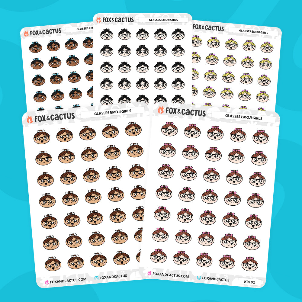 One (1) sheet of Kawaii Girl with Glasses Emojis planner stickers!* (AVAILABLE IN 5 VARIATIONS - PICK YOUR GIRL)
