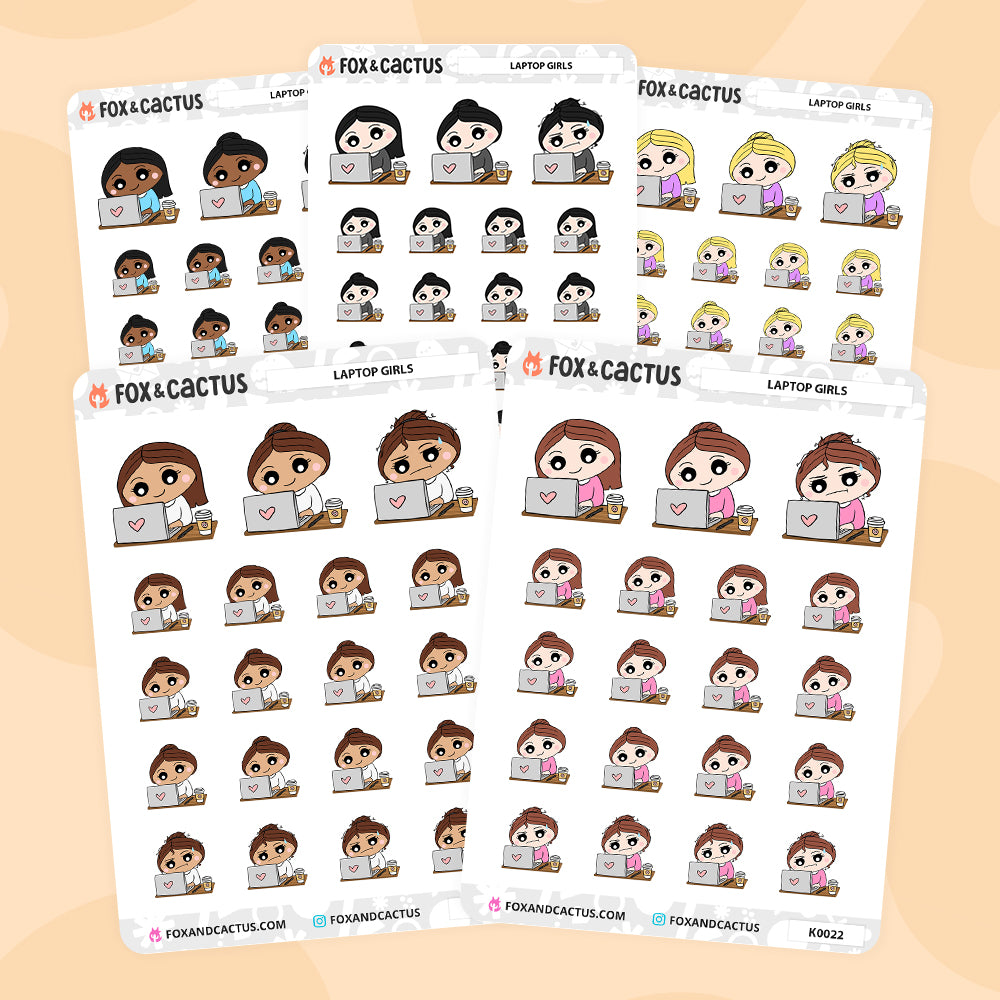 One (1) sheet of Laptop Kawaii Girl planner stickers!* (AVAILABLE IN 5 VARIATIONS - PICK YOUR GIRL)