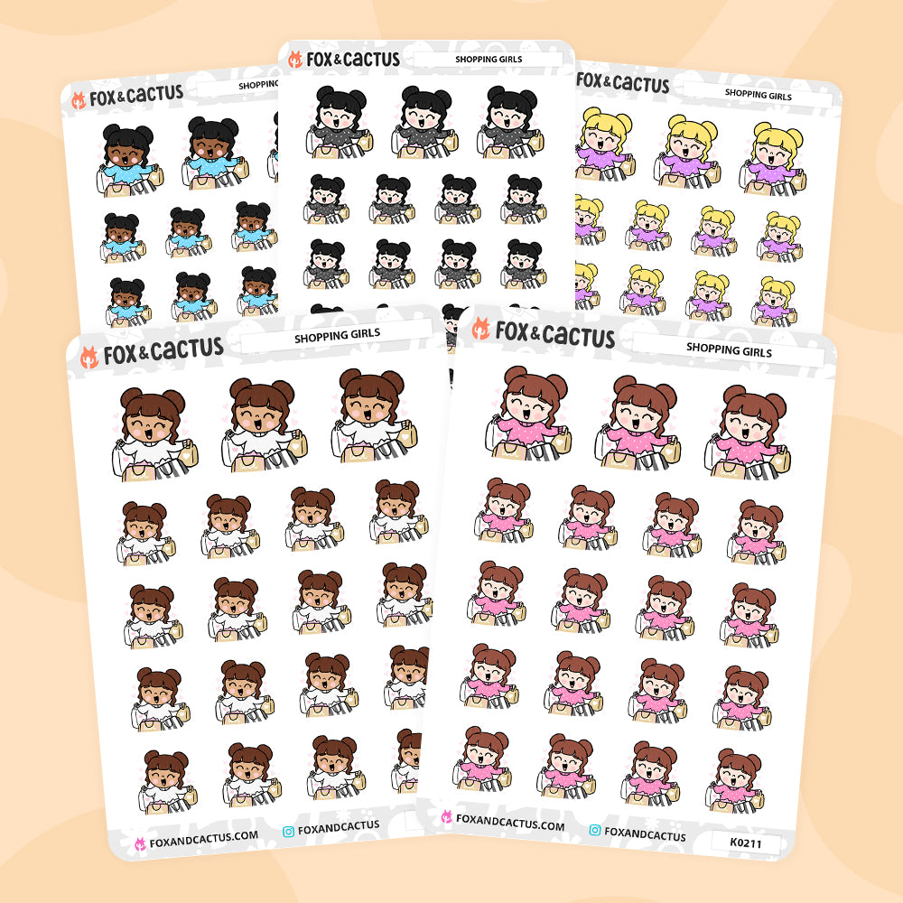 One (1) sheet of Shopping Girl stickers!* (AVAILABLE IN 5 VARIATIONS - PICK YOUR GIRL)