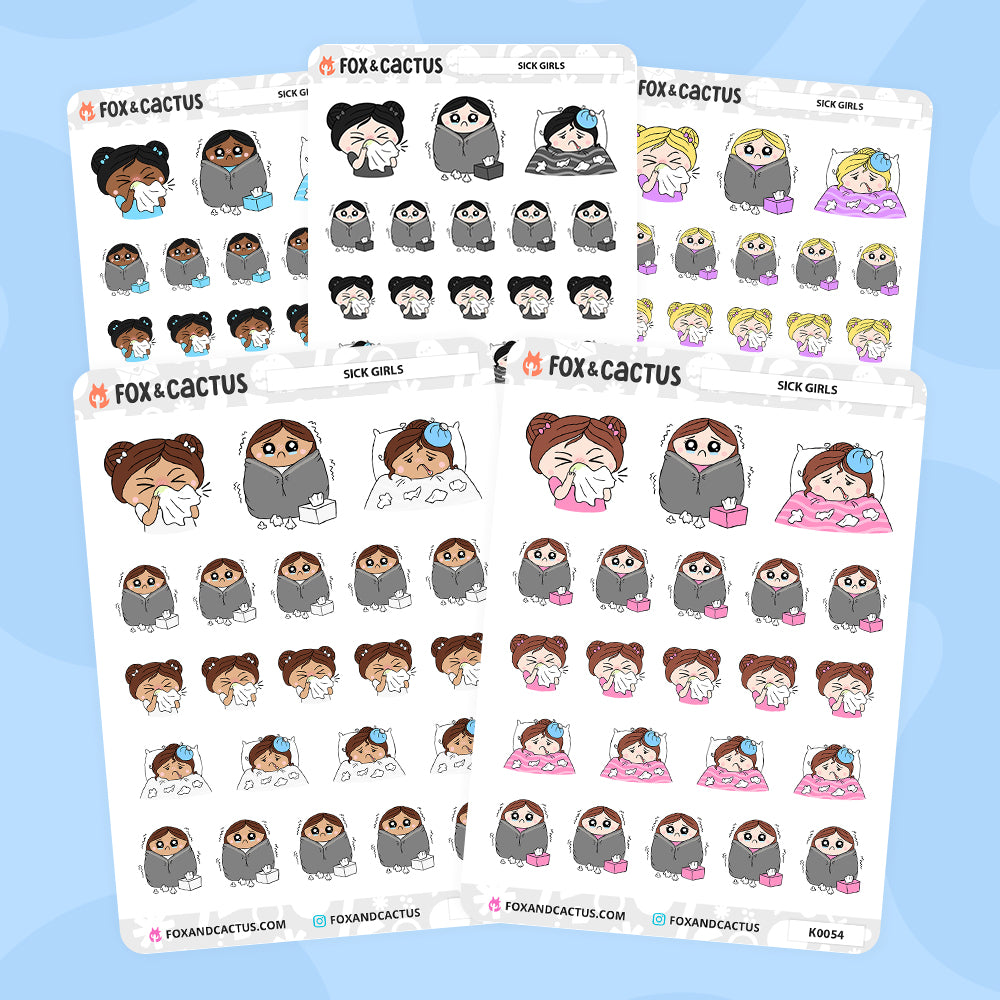 One (1) sheet of Sick Kawaii Girl planner stickers!* (AVAILABLE IN 5 VARIATIONS - PICK YOUR GIRL)