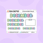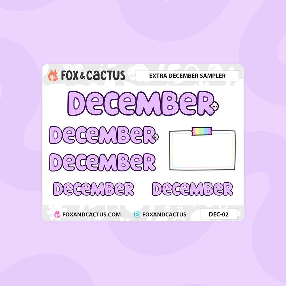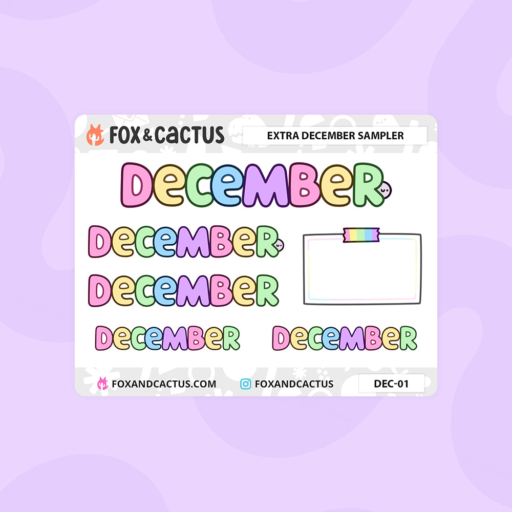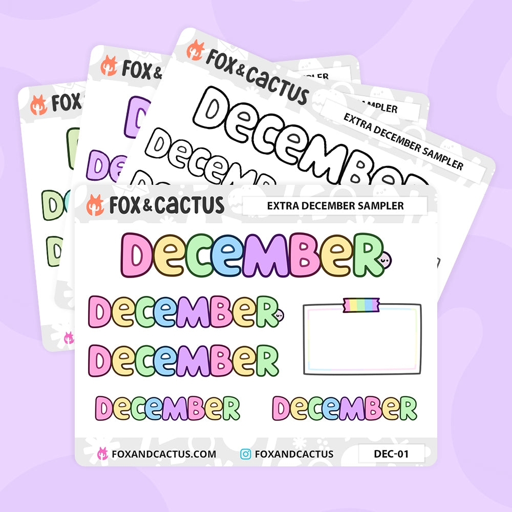 A bonus mini sheet of extra Decembers for those of us who started our planners early and need a cheeky extra December monthly sticker. Sheet comes with one (1) large, two (two) medium with and without Squish, two (two) small, and a bonus decorative note.