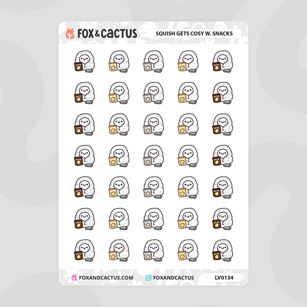 Perfect for marking when you get cosy in front of the TV with snacks in your planner of choice, or anywhere else your heart desires!! This is a full sheet of Emma's fave sticker from the mixed Cosy Squish sheet!