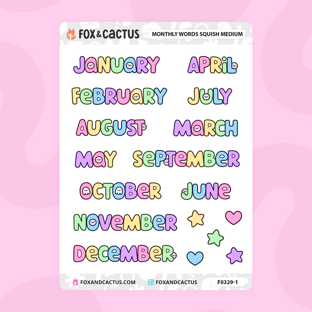 The perfect monthly headers for your planners and journals! Great for sticking in the monthly sections of undated planners, decorating your bullet journals, and adding some fun lettering to your dated planners! This version of our monthly words features Squish. 👀