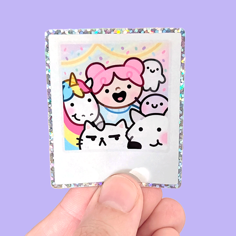 One (1) Besties Polaroid Glitter Vinyl (Weatherproof) Die Cut Stickers!*