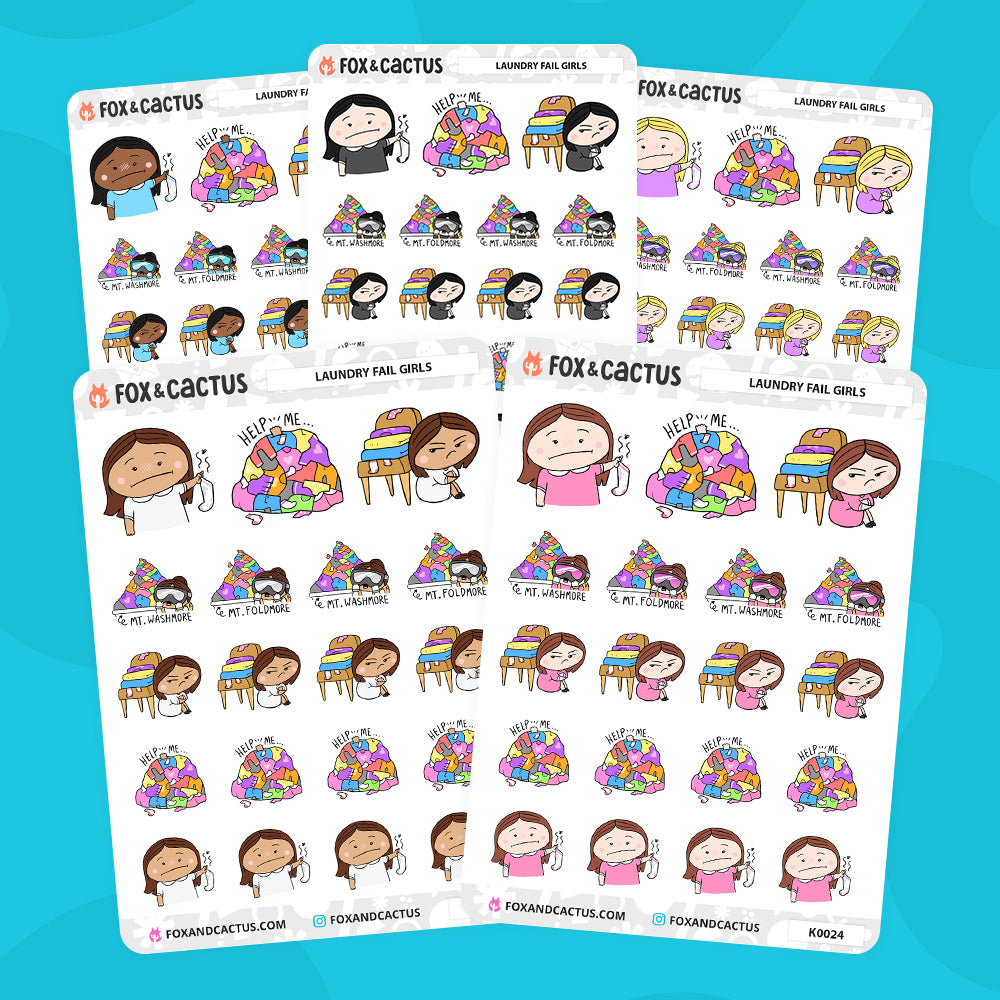One (1) sheet of Laundry Fail Kawaii Girl planner stickers!* (AVAILABLE IN 5 VARIATIONS - PICK YOUR GIRL)