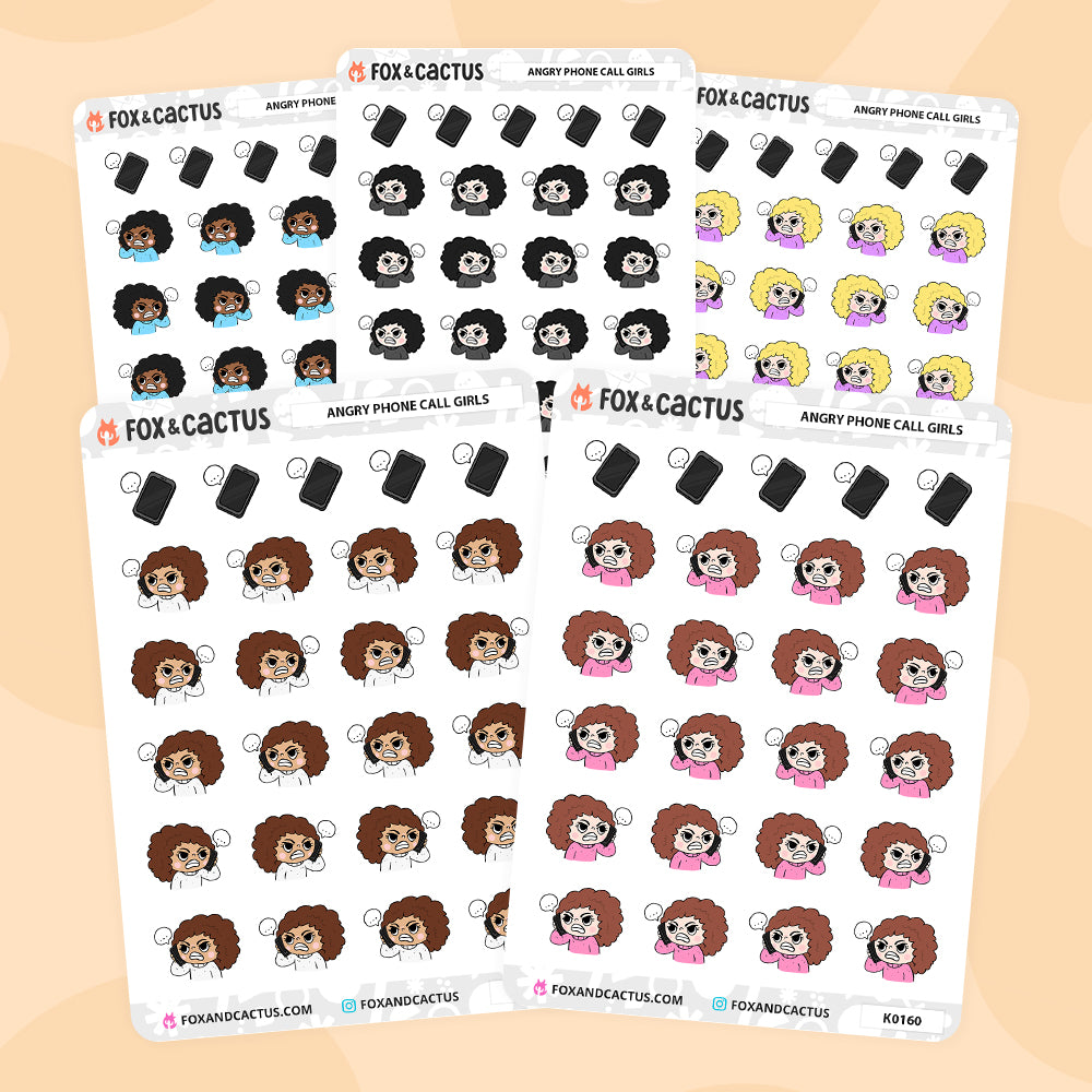 One (1) sheet of Angry Phone Call Kawaii Girl planner stickers!* (AVAILABLE IN 5 VARIATIONS - PICK YOUR GIRL)