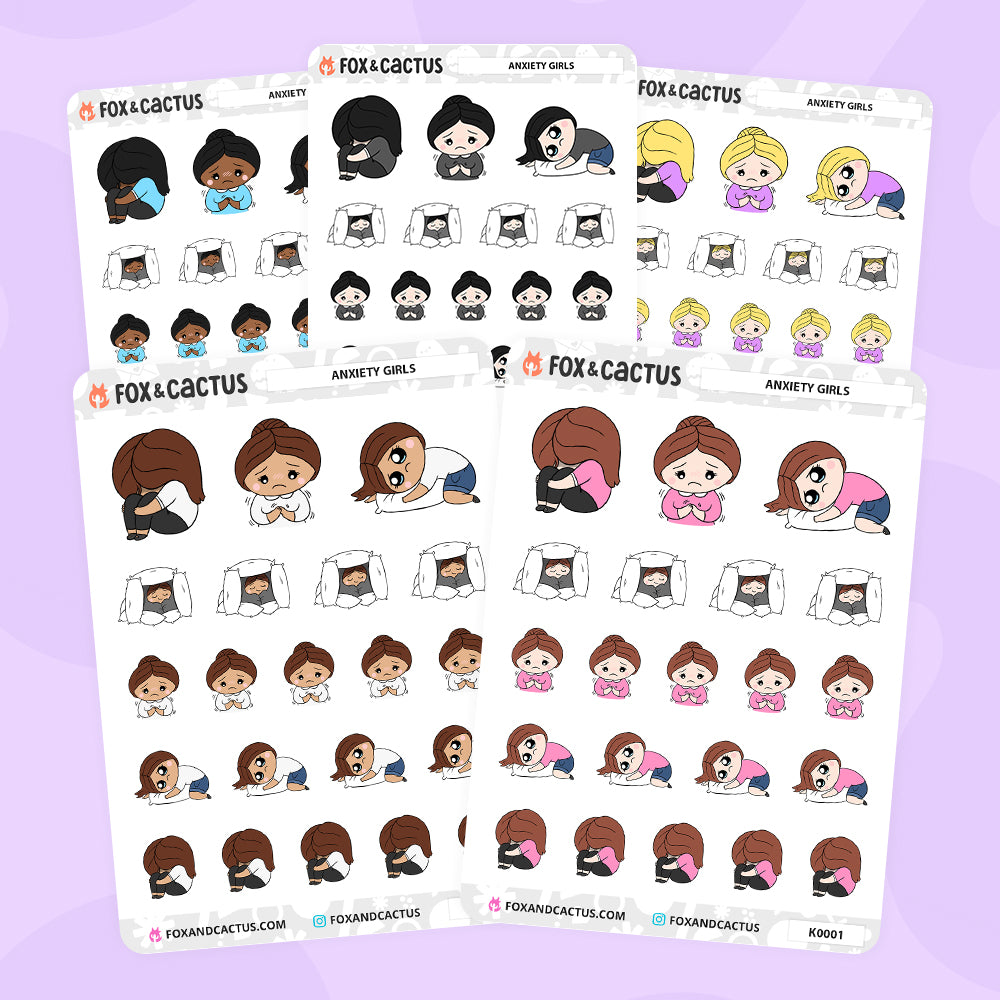 One (1) sheet of Anxiety Kawaii Girl planner stickers!* (AVAILABLE IN 5 VARIATIONS - PICK YOUR GIRL)