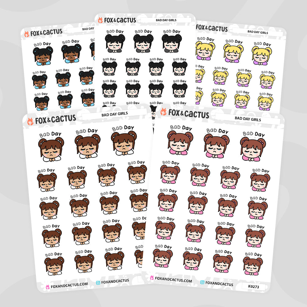 One (1) sheet of Bad Day Kawaii Girl planner stickers!* (AVAILABLE IN 5 VARIATIONS - PICK YOUR GIRL)