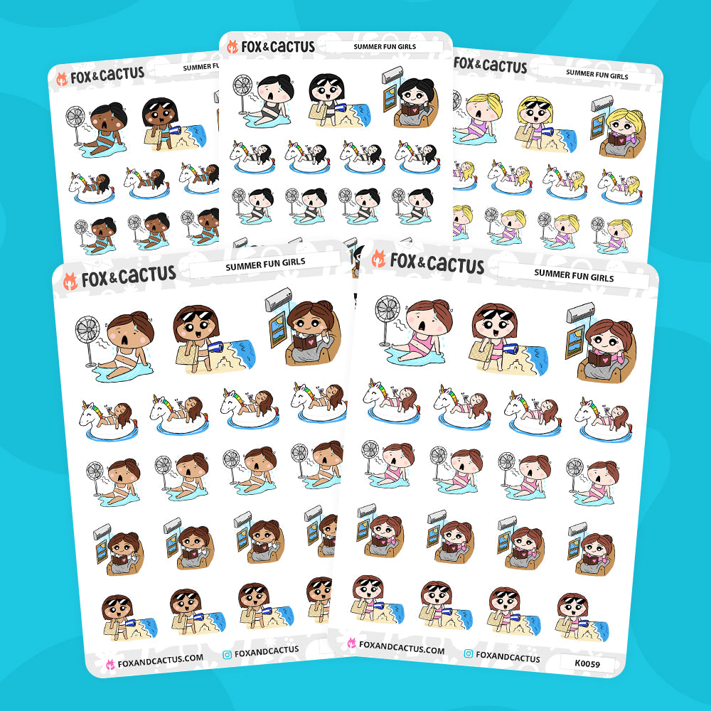 Summer Fun Kawaii Girl Stickers by Fox and Cactus
