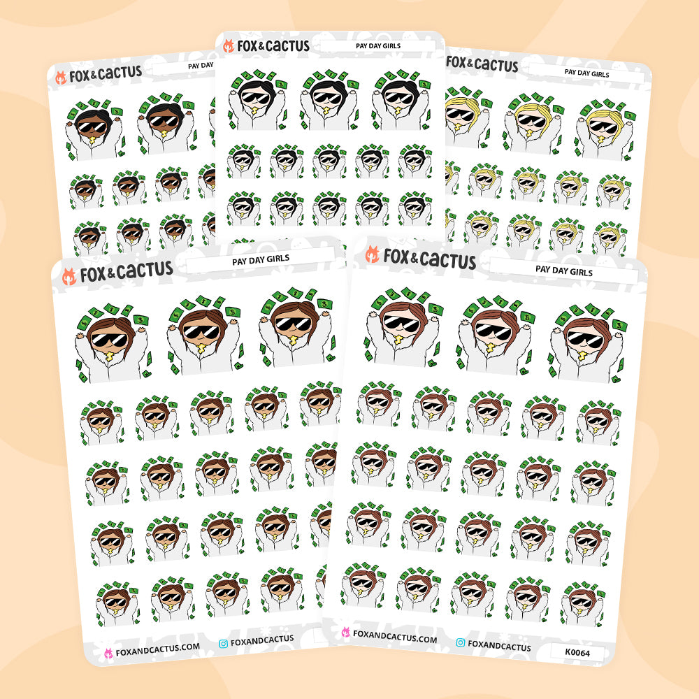 One (1) sheet of Payday Kawaii Girl planner stickers!* (AVAILABLE IN 5 VARIATIONS - PICK YOUR GIRL)