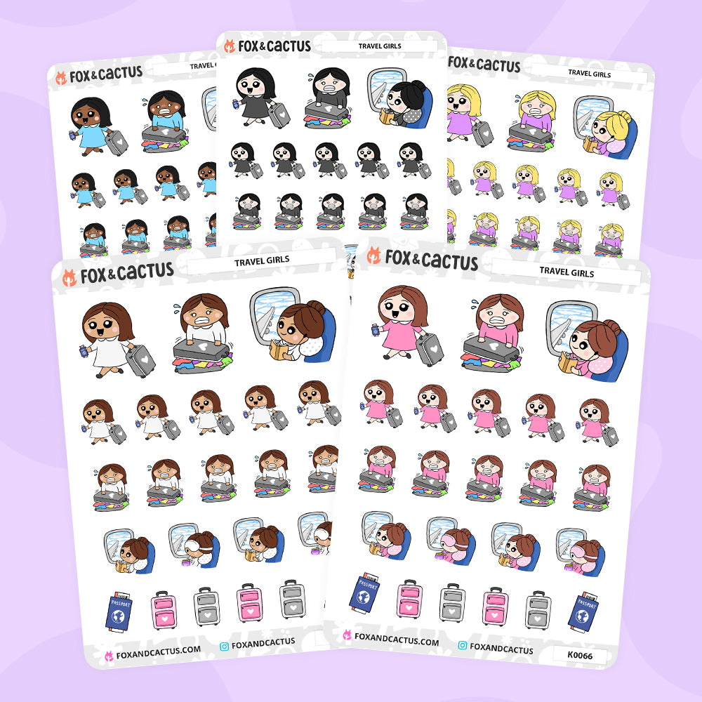 One (1) sheet of Travel Kawaii Girl planner stickers!* (AVAILABLE IN 5 VARIATIONS - PICK YOUR GIRL)