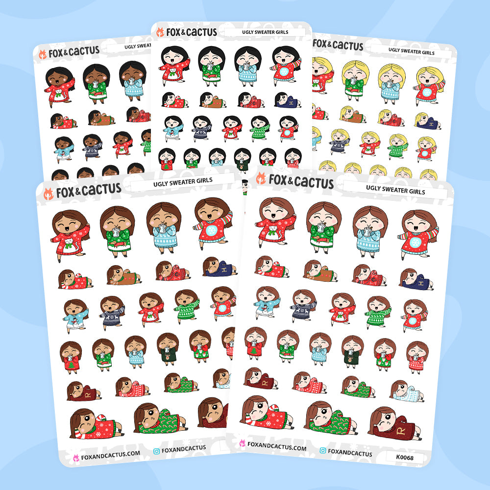 One (1) sheet of Ugly Sweater Kawaii Girl planner stickers!* (AVAILABLE IN 5 VARIATIONS - PICK YOUR GIRL)