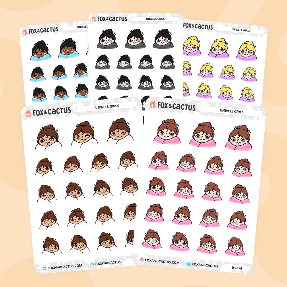 Perfect for marking your sick days in your planner of choice, or anywhere else your heart desires!! These girls are specifically designed to look generally unwell (rather than a flu/cold), so they can be used for a range of reasons.