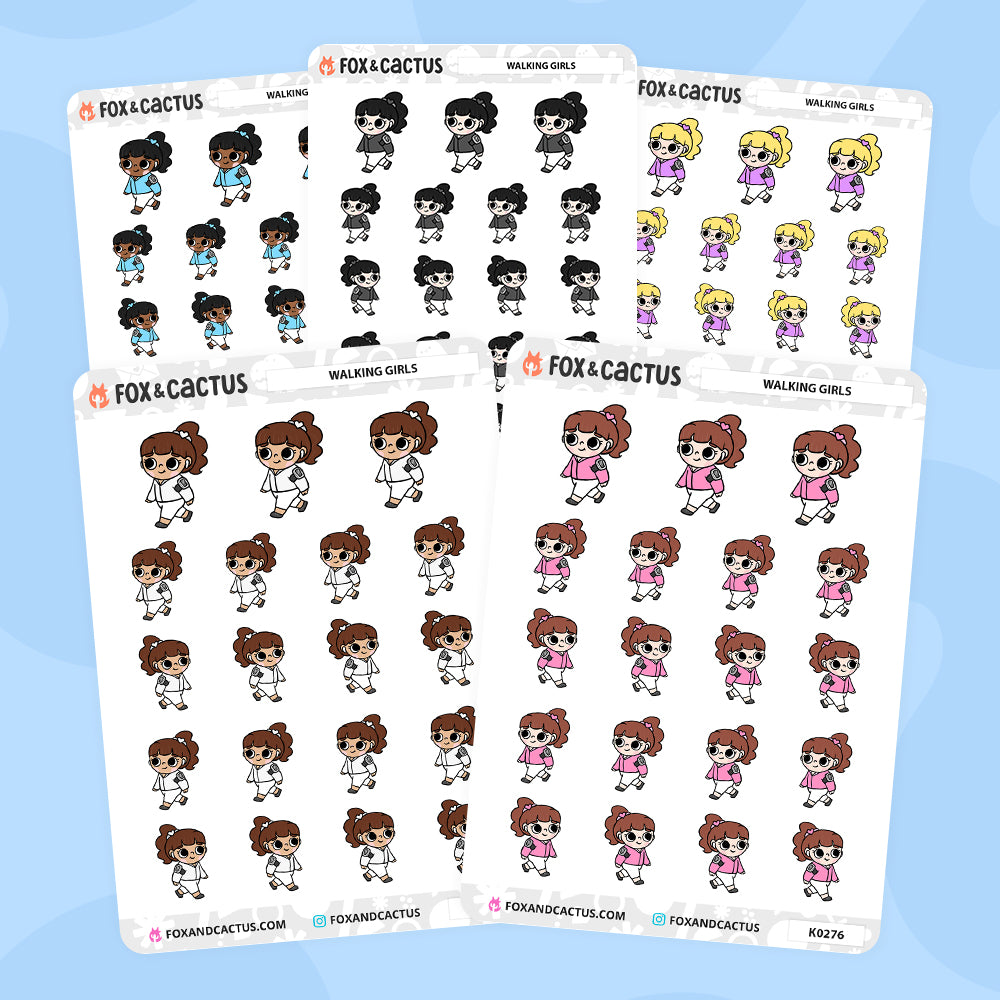One (1) sheet of Walking Kawaii Girl planner stickers!* (AVAILABLE IN 5 VARIATIONS - PICK YOUR GIRL)