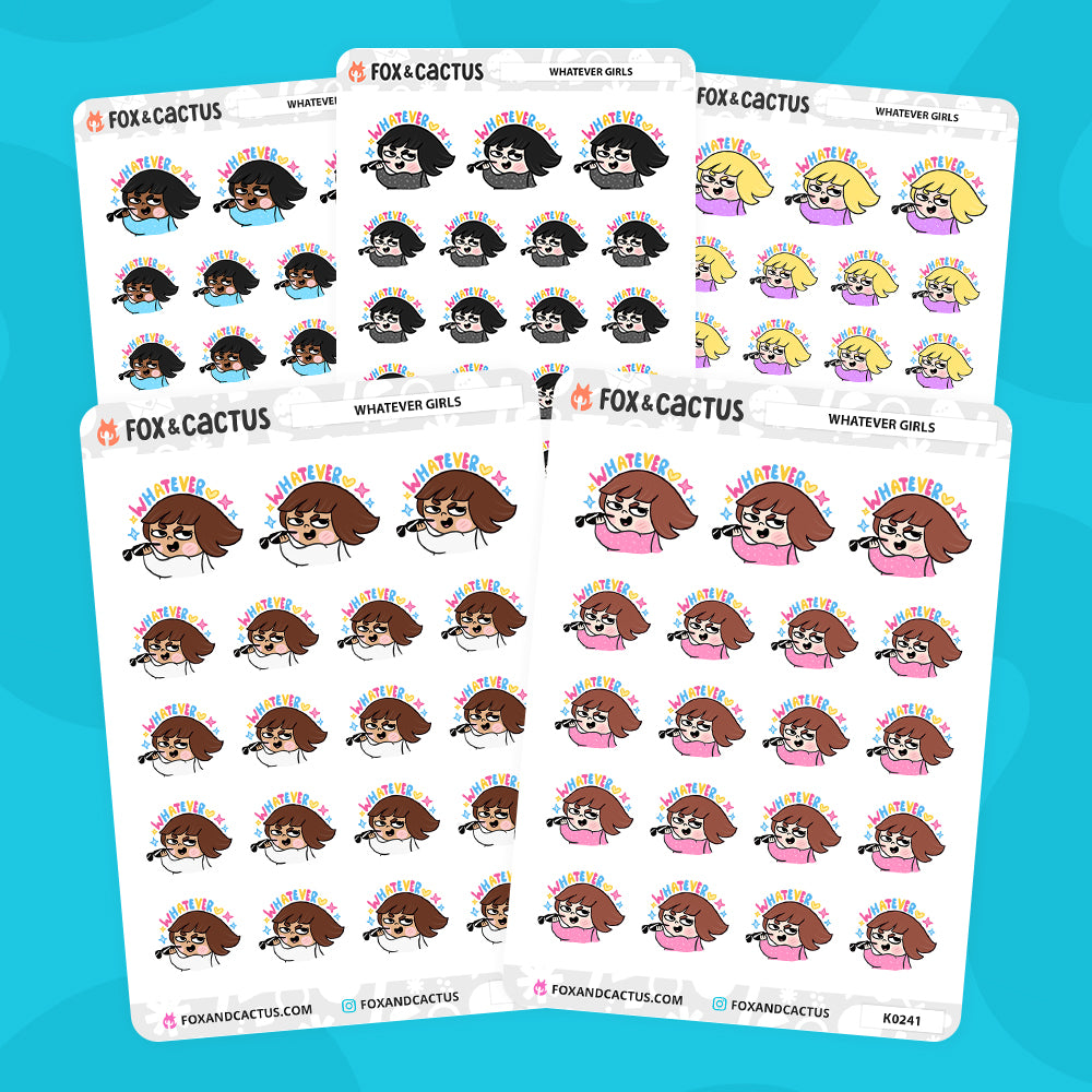 One (1) sheet of "Whatever" Girl stickers!* (AVAILABLE IN 5 VARIATIONS - PICK YOUR GIRL)