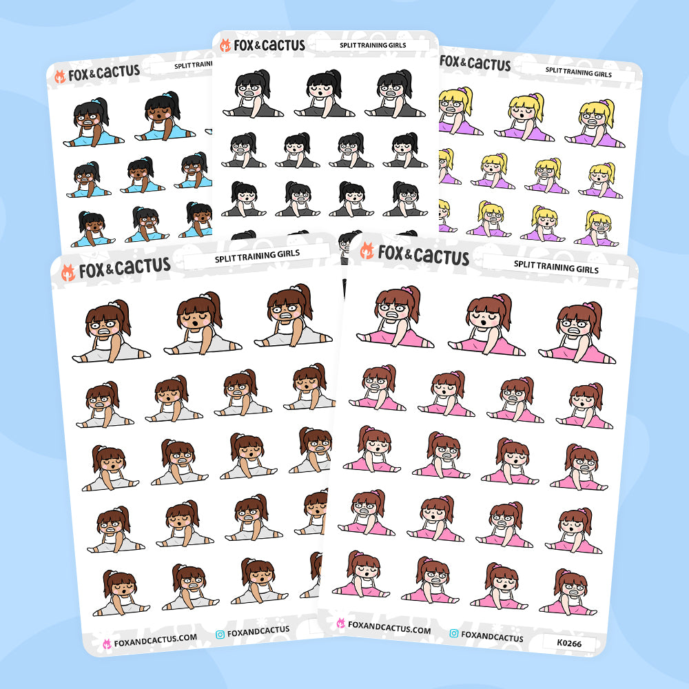 Squat Time Kawaii Girl Stickers by Fox and Cactus