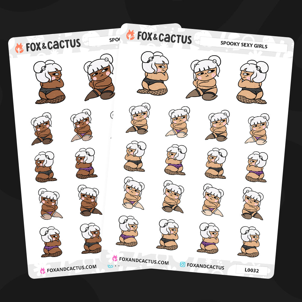 Spooky Sexy Kawaii Girl Stickers by Fox and Cactus