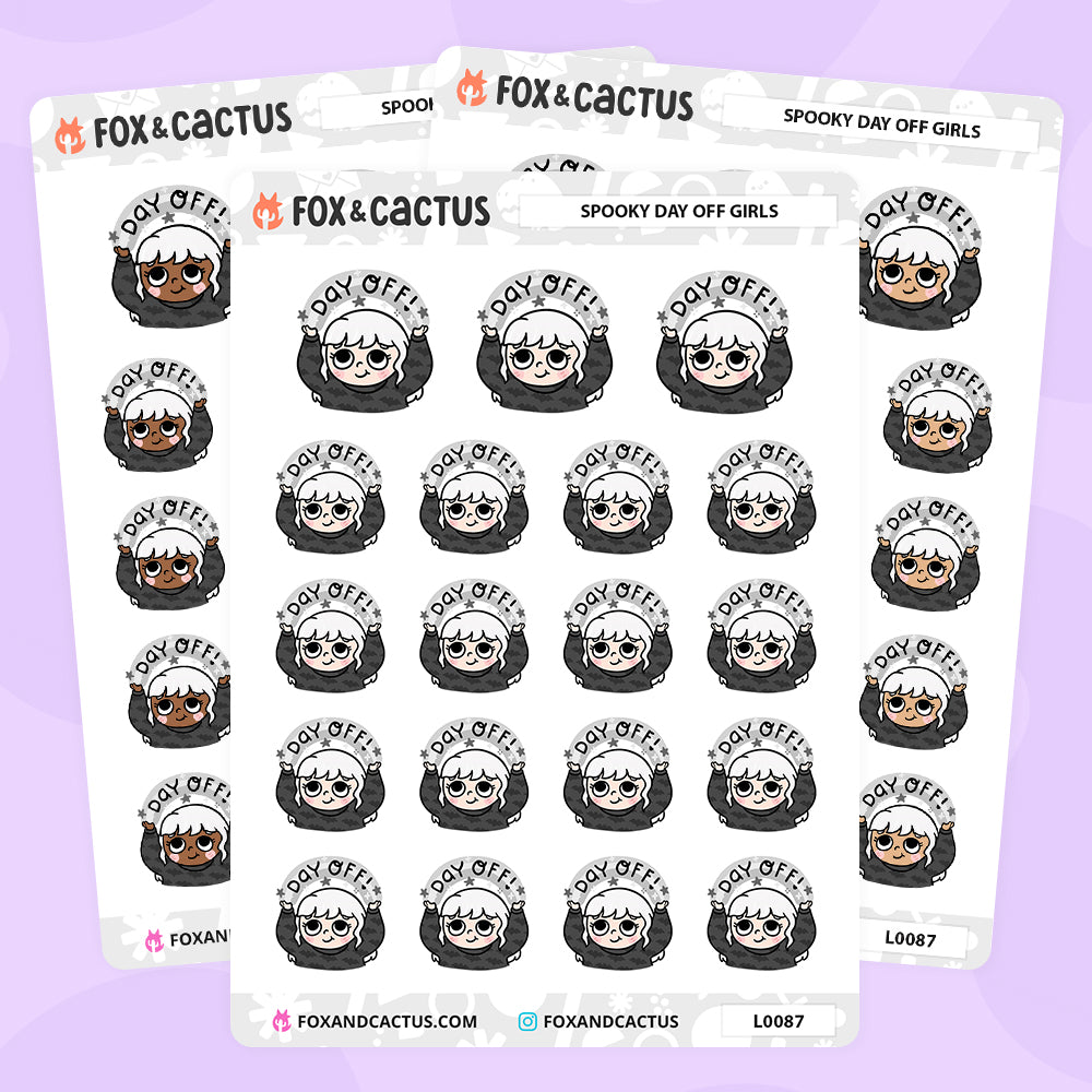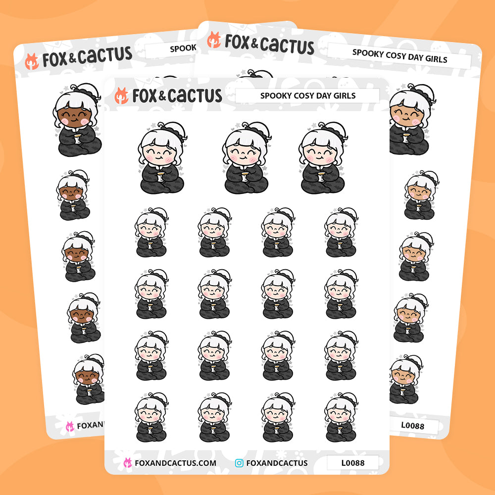 Spooky Meditation Kawaii Girl Stickers by Fox and Cactus