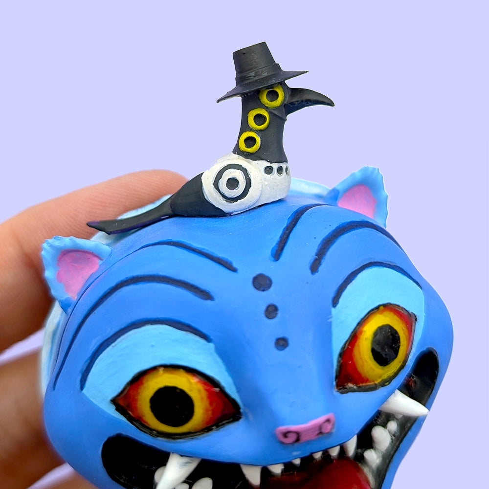 I made the hat for the tiger... but the bird keeps taking it. 🐯