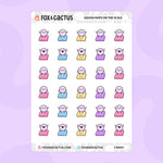 You can use them as rewards in your fitness and health planners when you complete a workout, cook at home, or take your meds. That little hit of dopamine when you stick a sticker for completing a task is the best.